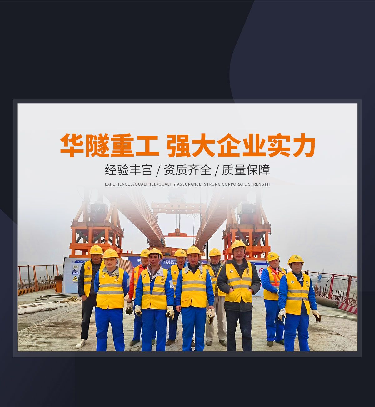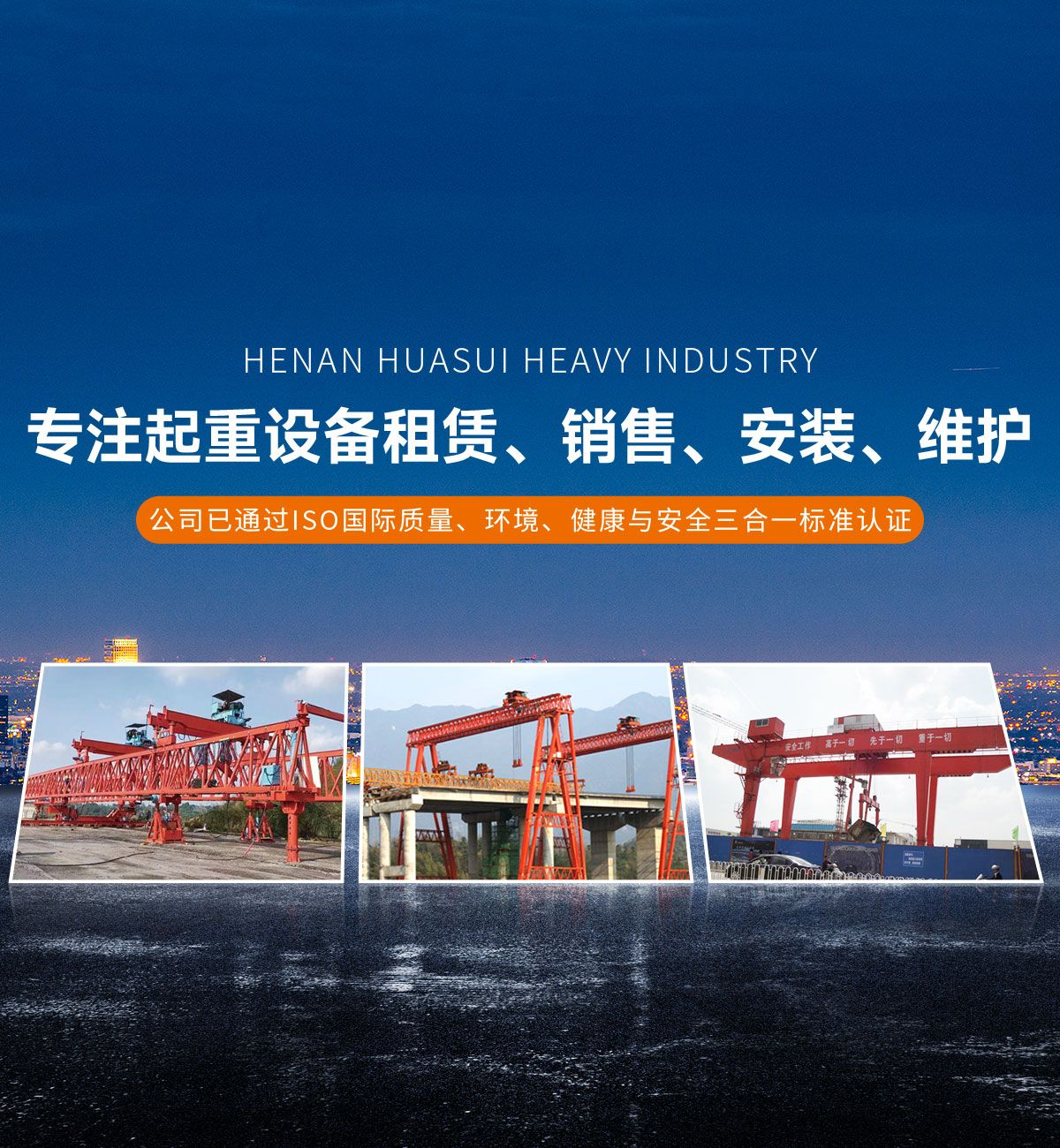 河南華隧重工機(jī)械裝備有限公司主要從事通用門式起重機(jī)、橋式起重機(jī)、電動(dòng)單梁起重機(jī),輪胎式起重機(jī)、架橋機(jī)、提梁機(jī)、遠(yuǎn)梁平車、鋼絲繩電動(dòng)萌蘆、卷?yè)P(yáng)機(jī)、起重配件制造、銷售:起重機(jī)械租賃、安裝和維修,起重設(shè)備園收,機(jī)械設(shè)備維修,鋼結(jié)構(gòu)工程承包,橋梁工程及技術(shù)咨淘服務(wù),銷售五金制品、機(jī)電設(shè)備:建設(shè)工程監(jiān)理,建設(shè)工程設(shè)計(jì),各類工程建設(shè)活動(dòng),建筑勞務(wù)分包,建筑物折除作業(yè),施工作業(yè),工程管理服務(wù),土石方工程施工,裝如發(fā)運(yùn)。  公司已通過IS0國(guó)際質(zhì)量、環(huán)境、健康與安全三合一標(biāo)準(zhǔn)認(rèn)證,特種設(shè)備制造許可證和特種設(shè)備安裝改造維修許可證。擁有完熟的質(zhì)量管理體系。嚴(yán)格的管理制度,強(qiáng)大的生產(chǎn)能力和先進(jìn)的檢測(cè)手段,在保證產(chǎn)品質(zhì)量的同時(shí),也具備了極強(qiáng)的市場(chǎng)競(jìng)爭(zhēng)力。  公司堅(jiān)持科技創(chuàng)新為理念,產(chǎn)品質(zhì)量為核心,注重信譽(yù),建立了減信可靠、快捷、思速。便利周到的售后服務(wù)網(wǎng)絡(luò)。  我們擁有的技術(shù)專家和技術(shù)服務(wù)隊(duì)伍為客戶提供充善的售前技術(shù)支持和全天候的售后服務(wù)體系,讓您無后顧之憂,享受一站式的超值服務(wù)。  “華隧重工,伴您成功“是華隧重工永遠(yuǎn)的宗指,真被的希望與各界朋友攜手并進(jìn)。共創(chuàng)輝準(zhǔn)!